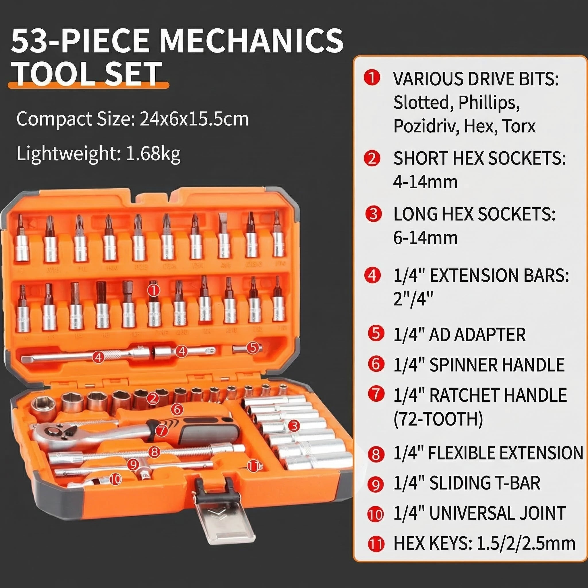MHS 53-Piece 1/4" Drive Ratchet & Socket Set